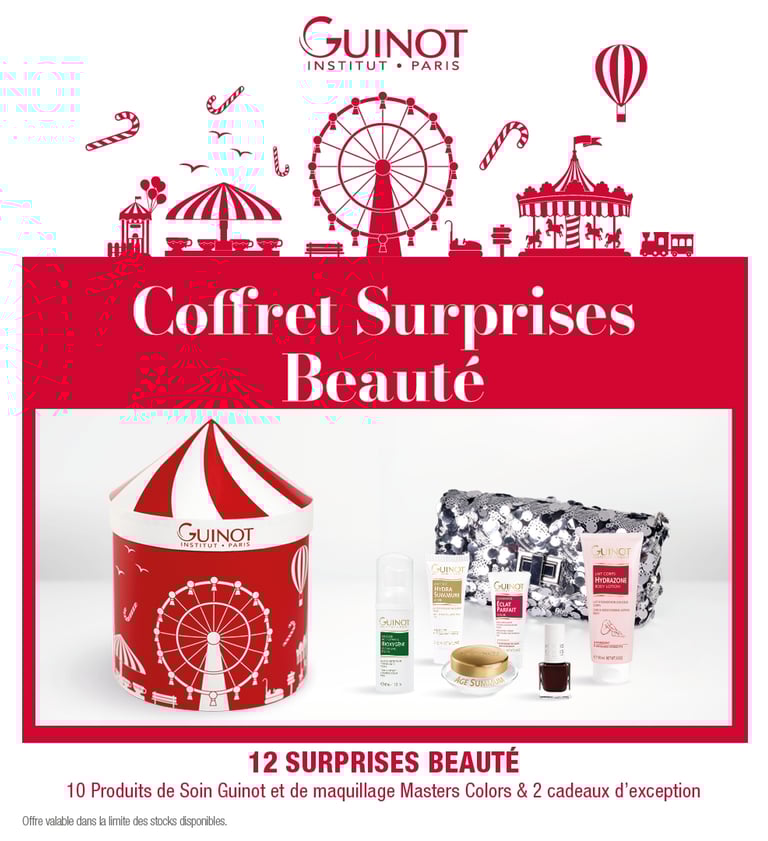 Cette année, Guinot réinvente l’esprit des Fêtes avec une nouveauté exclusive à découvrir : le Coffret Surprises Beauté*, un manège enchanté de soins d’exception pour célébrer la beauté en toute saison.